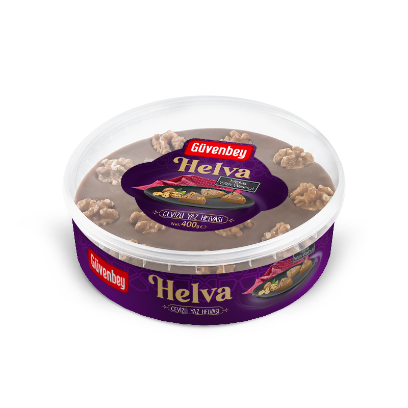 With its unique texture and the taste of walnut that creates a feast on the palate, Güvenbey Walnut Summer Halva preserves the secret of its flavour by using quality ingredients and preparing it with traditional methods. It is made using only tahini, sugar, sesame and walnuts. While we can offer a wide range of products including 200g, 340g, 600g, 800g and 5000g, we offer you the facility you want with baklava slice, triangular slice, tray and block choices.