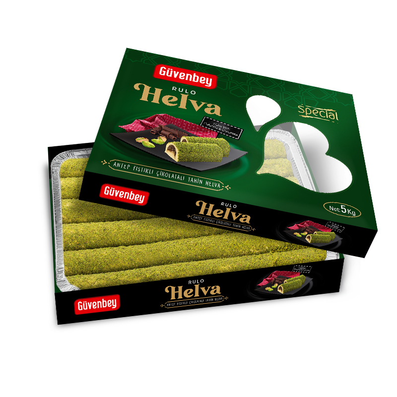Eşsiz çikolata ve susam lezzeti ile kendi diliminizi siz belirleyin! İşletmenizde dilediğiniz ölçüyü belirlemek için Antep Fıstıklı Çikolata Dolgulu Rulo Helva’ yı seçebilirsiniz. İçerisinde hiçbir katkı maddesi ve Glikoz şurubu içermeyen Antep Fıstıklı Tahin Helva sadece kakao, tahin, şeker ve susam yağının şeker ile karışmasını sağlayan Çöven Özütü kullanılarak yapılmaktadır.
