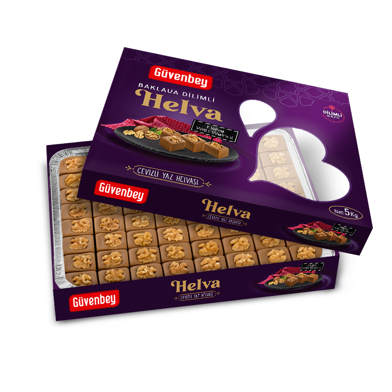 Ceviz severlerin müdavimi olduğu Güvenbey Cevizli Yaz Helvası size hizmet sektöründe zaman kazandırabilmek için dilimli hali ile! Kaliteli malzeme kullanımı ve geleneksel yöntemler ile hazırlanması, işletmelerinizde size ayrıcalık tanır. Sadece tahin, şeker, susam ve ceviz kullanılarak yapılmaktadır. 200g, 350g, 400g, 600g ve 800g olmak üzere geniş ürün yelpazesi sunabilirken, baklava dilim, üçgen dilim, tepsi ve blok seçenekleri ile size dilediğiniz kolaylığı sağlamaktadır.