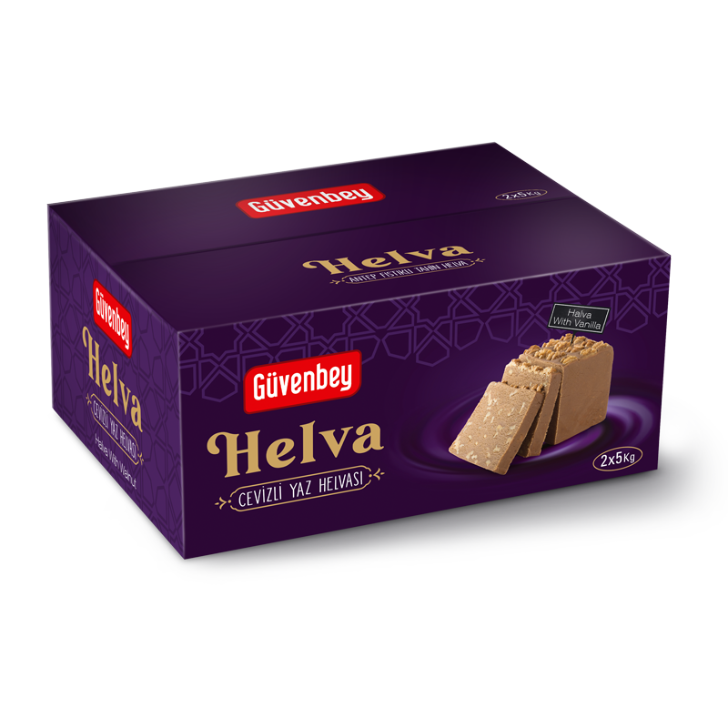 Ceviz severler için hiç bu kadar büyük olmamıştık! En iyi şeflerin işletmelerinde tercih ettiği olmazsa olmaz Güvenbey Cevizli Yaz Helvası ile dilediğiniz porsiyon büyüklüğüne siz karar verin! Kaliteli malzeme kullanımı ve geleneksel yöntemler ile hazırlanması lezzetindeki sırrı korumaktadır. Sadece tahin, şeker, susam ve ceviz kullanılarak yapılmaktadır. 200g, 350g, 400g, 600g ve 800g olmak üzere geniş ürün yelpazesi sunabilirken, baklava dilim, üçgen dilim, tepsi ve blok seçenekleri ile size dilediğiniz kolaylığı sağlamaktadır.